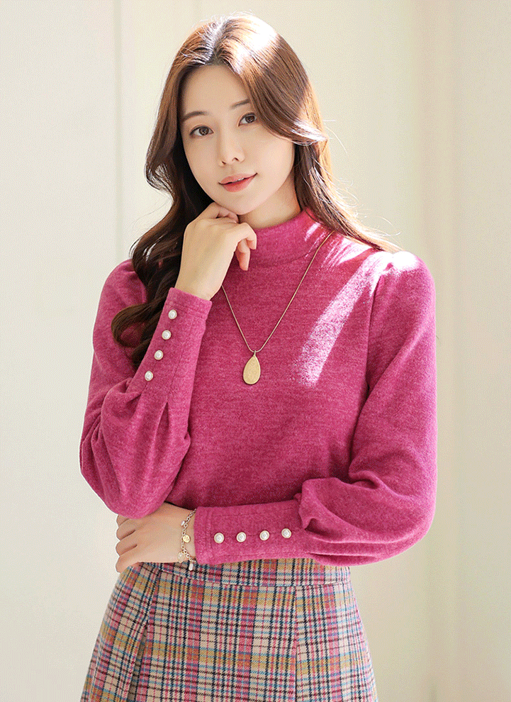 진주 버튼이 포인트가 되어 우아함을 더하며