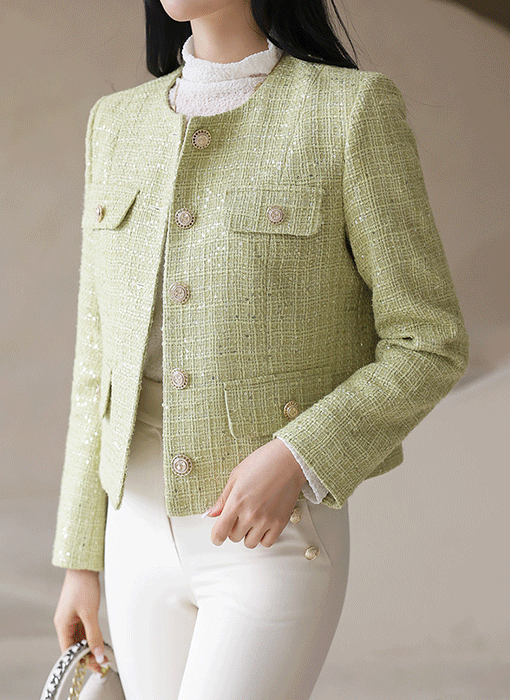스팽글로 화사함을 더해준 트위드 자켓이에요 :)