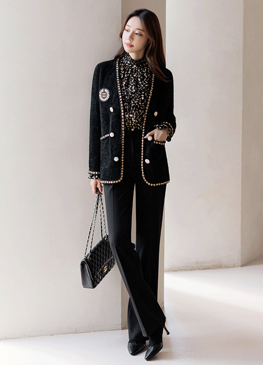 볼드한 쥬얼리 버튼으로 화사함을 더해주고