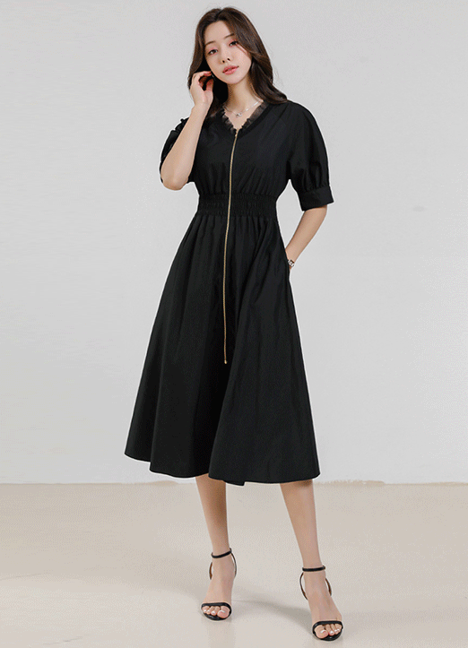 미니레이스단 배색과 골드톤 지퍼 포인트로 심플하게 포인트를 주어