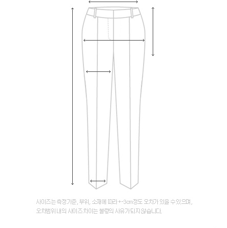 | 옵션 | 허리단면 | 힙단면 | 허벅지단면 | 앞밑위길이 | 뒷밑위길이 | 밑단단면 | 총기장 |