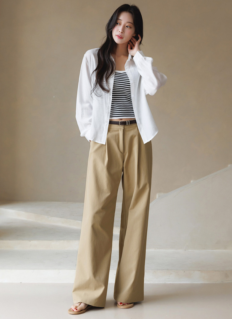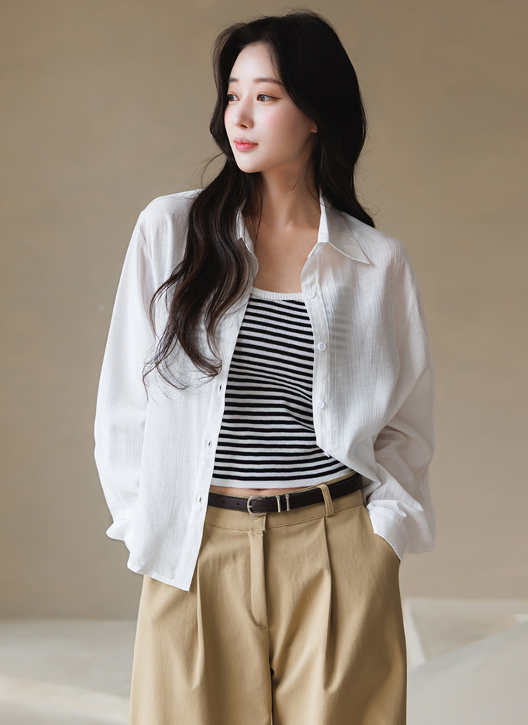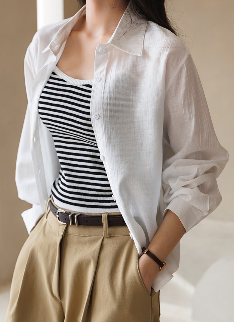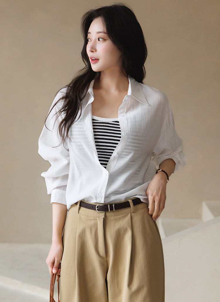 셔츠는 요루 가공이 더해진 거즈면 소재로 제작되어