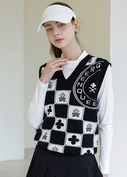 [QoG] 골프 프린팅 체크보드 V넥 니트 베스트_2color