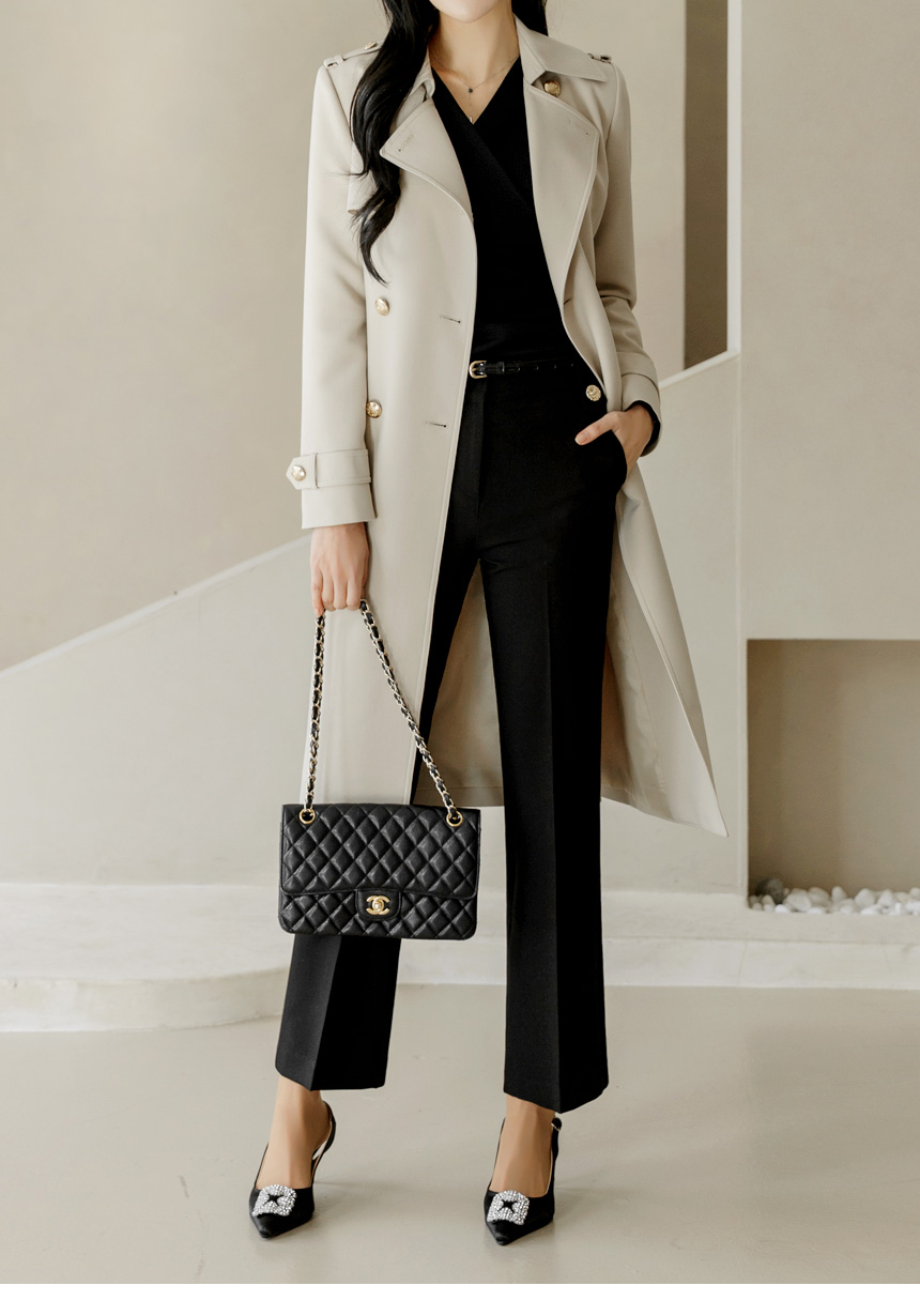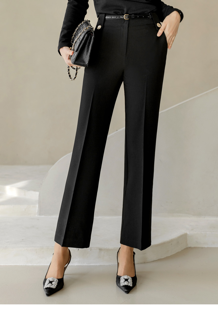 세미부츠컷이 깔끔하게 연출해주며 비조버튼으로 고급스러움이 느껴지는 슬랙스