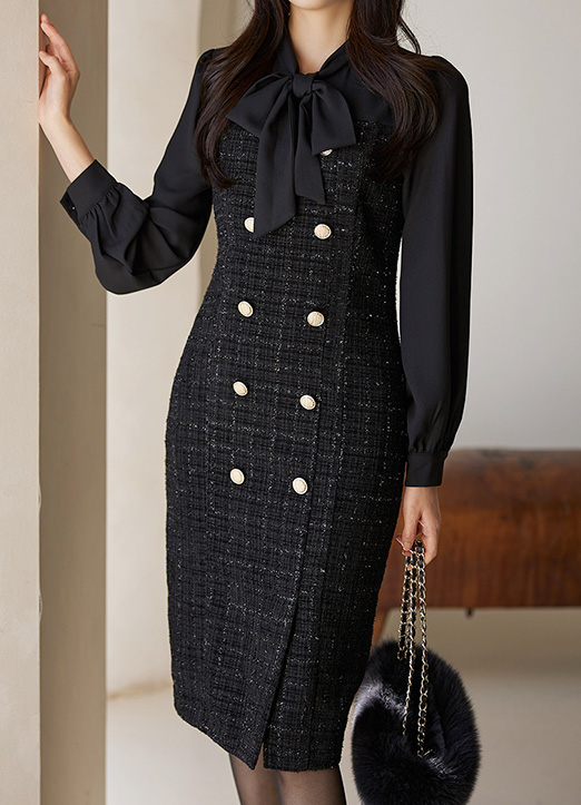 신경써서 꾸며준듯 예쁘게~ 입으실 수 있는 배색 트위드 원피스에요