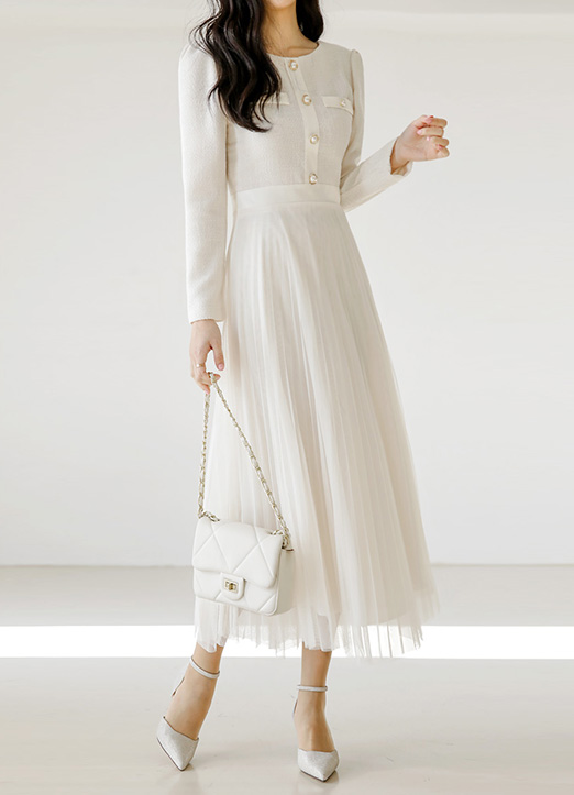 샤랄라~ 우아하고 페미닌한 무드를 선사하는 스커트 부분의 배색 조화가