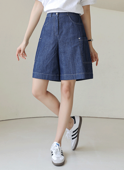 5부 기장의 데님 반바지에요 :)