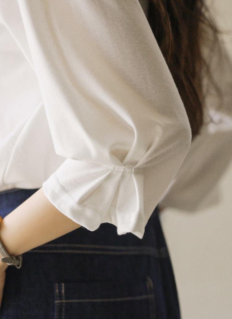 소매 라인에는 섬세하게 잡힌 핀턱 디테일이 더해져