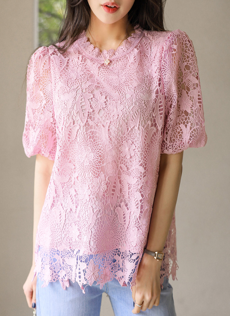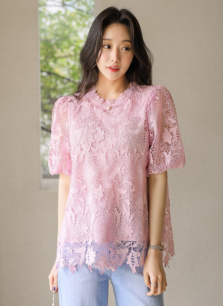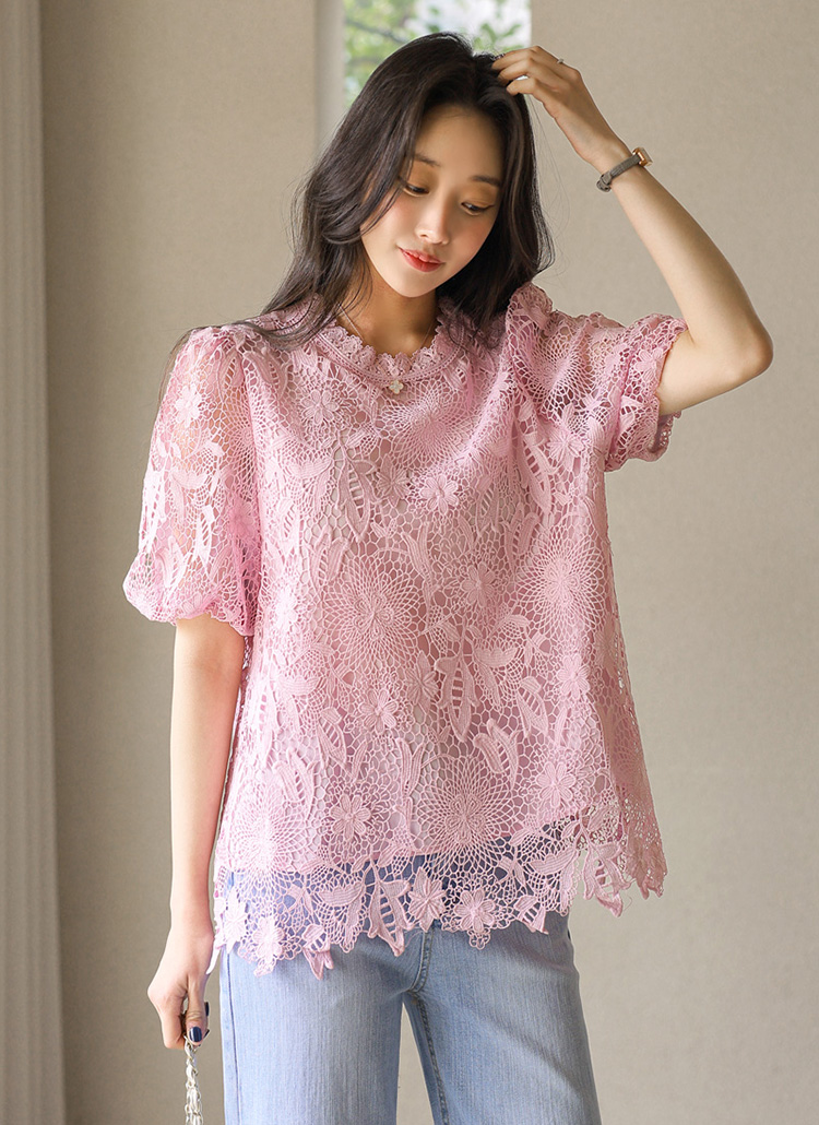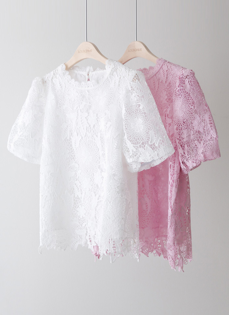 [BRANDUID] 모티브 플라워 레이스 벌룬 퍼프소매 블라우스[BRANDNAME] 46,800[PRICE]