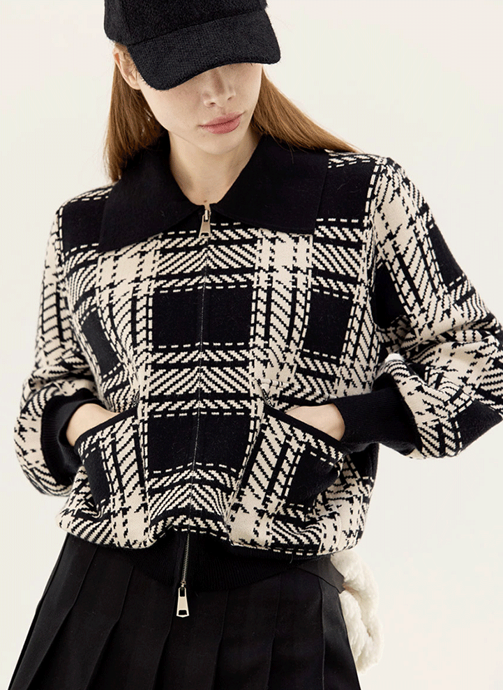 [QoG] 골프 타탄체크 집업 니트 가디건