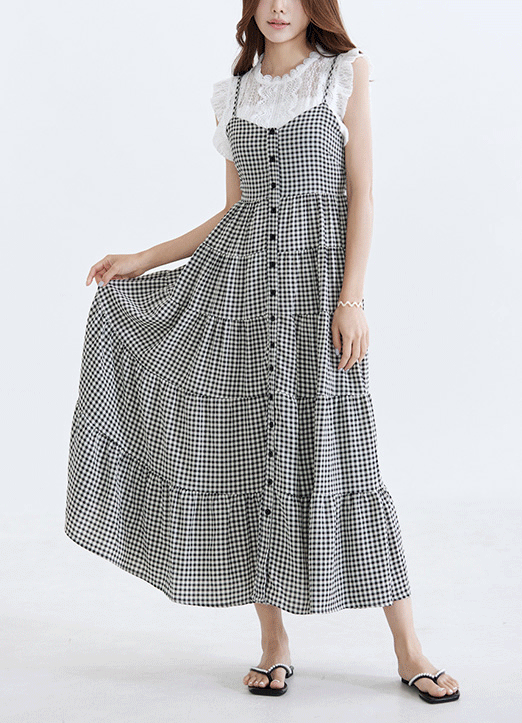 뷔스티에 디자인의 롱한 캉캉 원피스로 나와