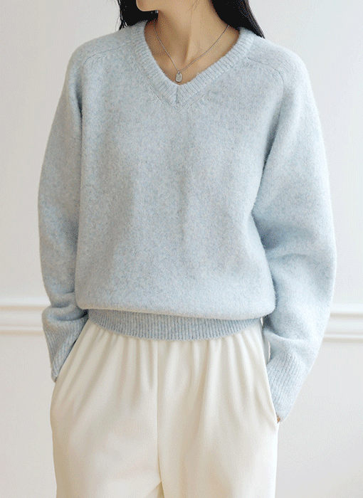 [Theonme] 퓨어램스울 모달 포근 브이넥 루즈핏 니트