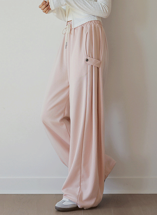 [Theonme] 사이드 비죠 스냅버튼 핀턱 와이드 밴딩 팬츠
