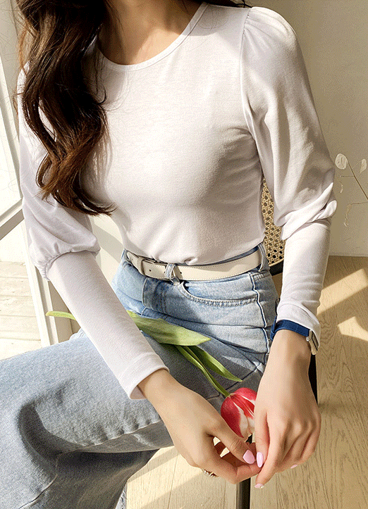 러블리한 느낌이 매력적인 퍼프소매 라운드티셔츠