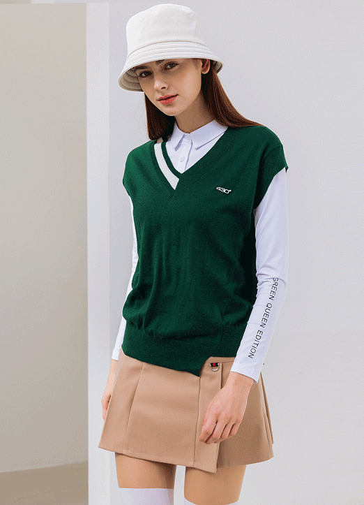 [QoG] 골프 울 캐시미어 배색카라 언발 니트 베스트_3color